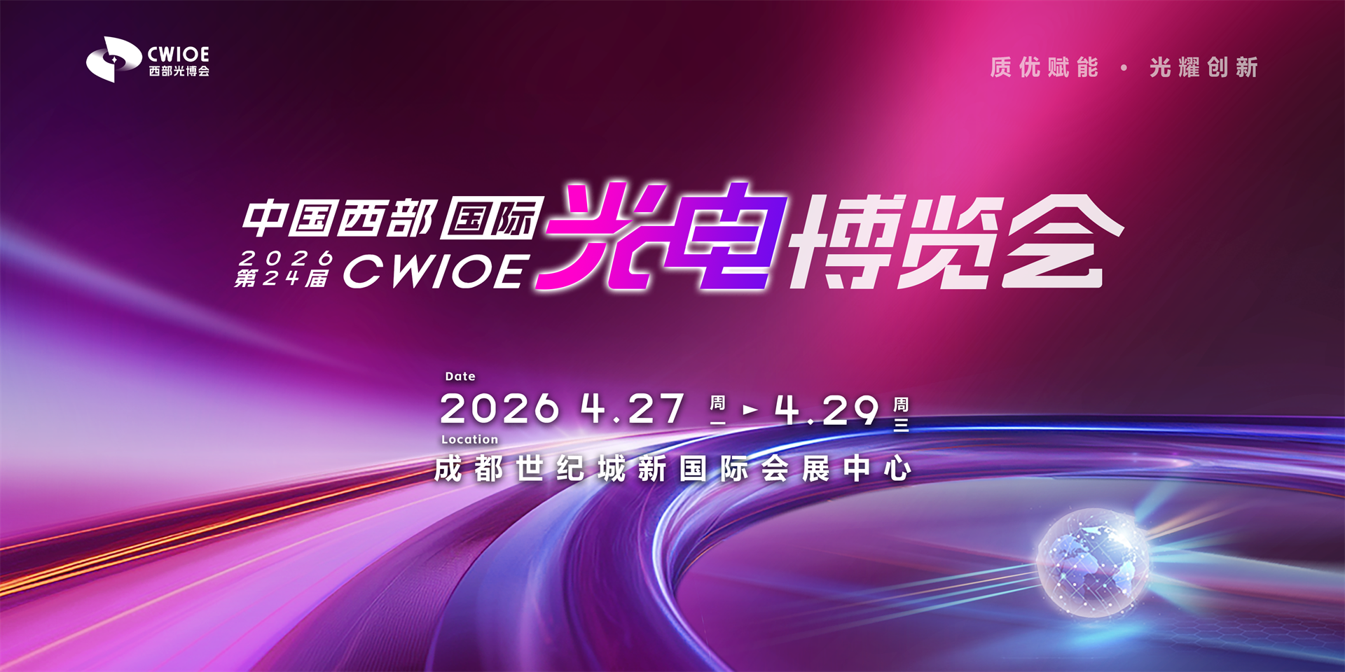 CWIOE2026以“質優賦能 光耀創新”為主題,定于2026年04月27日-29日在成都世紀城新國際會展中心舉辦,大會沿襲多年“展研結合”風格,本屆將舉辦2026第三屆中國西部光電產業創新發展論壇(主論壇),光學及光學制造創新發展論壇、第二屆西部省市光學學會聯誼會暨學術交流會,激光及激光應用創新發展論壇,智能傳感與機器人視覺創新發展論壇,紅外應用創新發展論壇,光電儀創新發展論壇,光通信與5G(F5G)創新發展論壇,智能觸摸屏創新發展論,LED新技術新設備交流會等內容豐富、前瞻實用的配套活動,同時舉辦成果展示、商務推介以及應用體驗等活動,以促進業內“產、學、研、用”的交叉融合和有效對接。